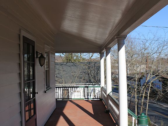 This apartment, or half house, for rent is in the fantastic riverfront town of Frenchtown. It exudes Currier & Ives charm, in a setting with a hedge of lilacs in the front, and banks of perennials including hostas, Lilly of the Valley, daffodils and fern in the back. This apartment is in a 2 family house, side by side. The apartment has 2 Bedrooms. The large bedroom in the back overlooks gardens with a French balcony. Both bedrooms have ample closet space. There is a large eat in kitchen with a dishwasher. The living room has random plank flooring. There is a gorgeous wrap-around porch with a door to the living room and to the kitchen. The porch also exits to the side yard lawn. The bath has a new tub, tile, and a pedestal sink. A shared rear foyer has a coat closet for each apartment. The house has an attic for storage, and washer and dryer hookups are in the basement. There's off street parking behind the house. The heat is by oil furnace with hot water baseboard. The apartment has all new Anderson windows, newly refinished hardwood floors, new flooring in the kitchen, and is freshly painted. The porch was just restored. We're just now putting the finishing touches on major renovations. It's available at the end of the month. Bedroom 11'-2" x 16'-4" plus 11' of closet Bedroom 12'-2" x 7'-11" plus nearly 8' of closet Living Room 15'-4" x 16'-4" Kitchen 15'-10" x 11'-1" Upstairs hall 7'-5" x 8'-3" Frenchtown is 15 minutes west of Flemington on the Delaware River. It has great restaurants, biking and walking on the rails to trails along the river, a boat launch, and great boutique shops. The area is set in the rolling hills of Hunterdon County, a destination for those looking to go hot air ballooning, canoeing, kayaking, or checking out the wineries. One can find great local cheeses and breads at Bobolink, and the best muffins at The Baker in Milford. Nearby are two small airports for flying or sky diving. Frenchtown is upriver from the other great riverfront towns of New Hope, Lambertville, and Stockton. The rent is $1,250/ mo. + utilities, (1.5 month security deposit, plus payment of the balance of the oil in the tank required) Tenant pays for utilities