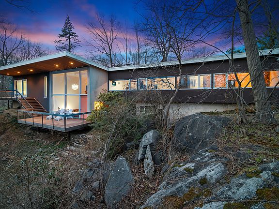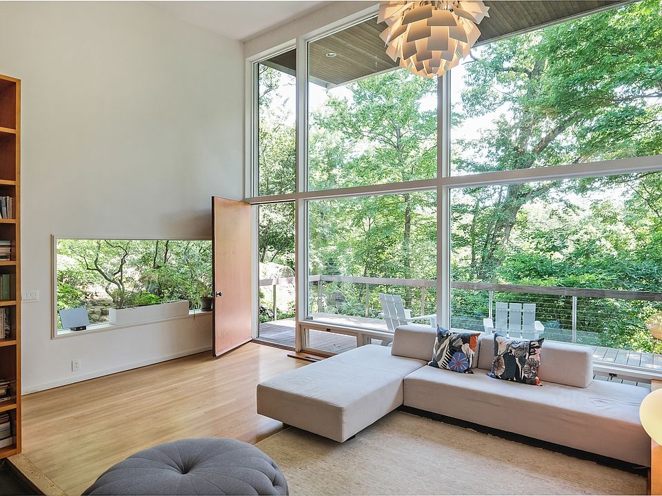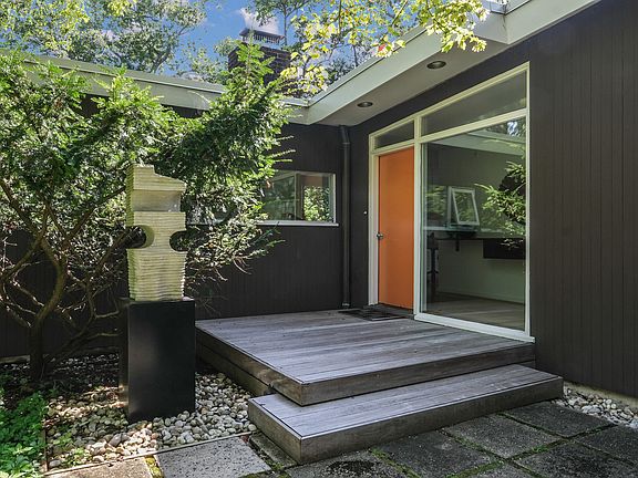 The Stoller Home, 1948. Designed by esteemed photographer, Ezra Stoller, alongside acclaimed architects, Abraham Geller, and George Nemeny. Sensitive additions and upgrades blend artistically with integrity and livability. A custom Nakashima mantle floats within the dramatic formal entry overlooking two-story view glass providing nature as artwork. Professional kitchen with ribbon windows and skylight becomes the backbone of the home. The main living spaces are open and inviting for wonderful entertaining! The bedroom wing has an enchanting master ensuite; a retreat itself. The house flows onto a beautiful patio overlooking a flat lawn for play and for repose, the welcoming Japanese influenced courtyard is perfect. Rare and refined. Waterfront access and neighborhood pool.