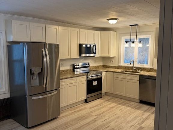 Come live in this newly renovated 3 bed, 2 bath ( plus a multipurpose 4th bonus/living room - which could also be used as a master bed/bath ). The home comes with a nice peaceful yard overlooking the river and a slider out to the big deck where you will enjoy everyday relaxing. Cook dinner in a nicely renovated large kitchen with granite countertops and stainless steel appliances. Rooms in the house include kitchen, living room, dining area, 3 beds, 2 baths, bonus room, mud room area. Unique layout with flexible options depending on preference. There is also an oversized barn - 2 car garage that is optional to come with the home. Property is cared for by a local professional management company.