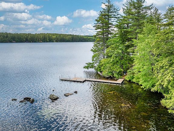 The lower level has a wall of glass windows and direct entry out to a flagstone patio and a huge, private outdoor shower. The path down to the lake is just a few steps away. There is a vast open entertainment/media space complete with a beautiful Brunswick pool table, a large bedroom suite, a storage room, and a workshop. The short trail from the house through the forest floor and out to the waterfront dock is magical. A short walk or two-minute drive will take you to the Association Common Area, which has a large, covered picnic house, outdoor grill, swim docks, boat docks, kayak/canoe racks, and a boat ramp. Twelve minutes to the Bridgton Highlands Country Club, 16 minutes to Downtown Bridgton, and 20 minutes to Pleasant Mountain Ski Area. Please call and make an appointment to visit this one-of-a-kind property. A comprehensive property website is available. Contact any Maine real estate agent.