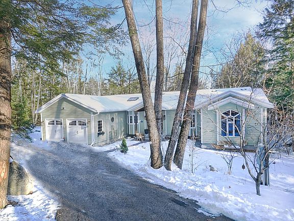 When you enter the house on the main level, its multiple glass windows instantly captivate you, flooding the space with natural light. The view from the four main living spaces and decks is a treehouse view with Highland Lake in the background. Entrance hall with a half bath and double closet; Living room with a vaulted ceiling and a Scandinavian woodburning stove; Open concept dining room and kitchen with glass doors out to the primary mahogany deck; three-season sunroom with vaulted ceiling; primary bedroom suite with walk-in closet and private deck; two additional bedrooms; additional full bath; laundry room and pantry; direct entry two car garage. Beautiful pine and cedar doors, baseboards, trims, and many custom accents underscore meticulous attention to detail, achieving the perfect balance of a warm, woodsy atmosphere and modern sophistication.
