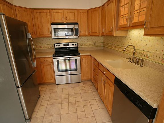 Great location in complex. This unit backs to wooded area and is very private. Garage is over sized. 3 full and 1 half bath and great for the extended family. Kitchen has been up dated.