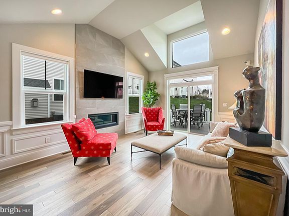 Magnificent end unit town home just over 2 years old in prestigious Reserve at Spring Mill in sample home condition fronting to acres of open space and trees. This 3 BR, 3.5 bath stone front town home with 2 car garage and full finished basement offers many upgrades and improvements with a bright, open, innovative floor plan. 1st floor has large dining area and gourmet kitchen featuring stainless steel appliances, granite counters and island, 42 " cabinets, large pantry and custom lighting. Expansive and comfortable great room has loads of windows, dramatic vaulted ceiling, recessed lighting and wall mounted gas fireplace. Hardwood floors t/o much of 1st floor. Designer light fixtures and ample recessed lighting throughout. Most windows have remote controlled motorized shades. A 1st floor bedroom offers a tray ceiling, recessed lighting, large closet and full en-suite bath with ceramic floors and surrounds and double vanities. The 2nd floor has a large open loft area with granite topped cabinets and a built in beverage cooler. There is also a large bedroom with an attached full bath and walk in closet that could also be a main bedroom. In addition, and on the other side of the loft area, there is a 3rd bedroom with walk-in closet . Wonderful full finished basement with higher ceilings, an egress window, 3rd full bath, recessed lighting, and loads of storage space. Lovely deck off of the great room with steps leading to the rear yard. Minutes from shopping and restaurants. A private country club surrounds much of the community. This like new, tastefully decorated home with extensive mill and trim work has been meticulously maintained and features so many upgrades and improvements.