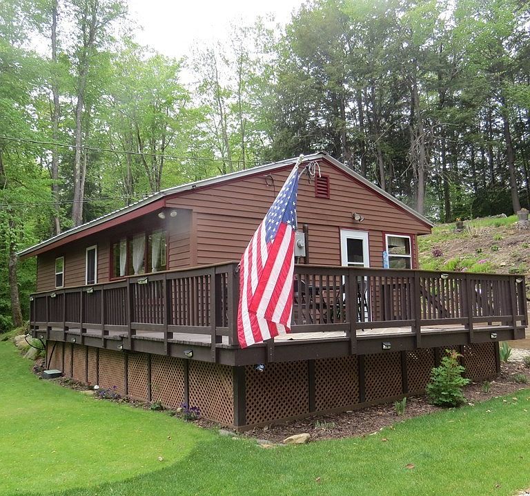 Recently renovated 1,100 square foot cottage. New roof, sprinkler system, kitchen with new appliances. Title V has been done. Raised high above the road with great water views from the beautiful deck. Two new mini splits to handle any kind of weather. This home is not on the water but is right across the street to the beach access and boat ramp access. This home has it's own well with a brand new pump. The Hammond Pond association which this cottage is part of includes a community house and a chip and putt golf course, beach rights and boat ramp access.. Recent indoor and outdoor paint and staining, updated electrical, lawn irrigation, back wall retention and stairs plus lots of perennials! A must see.