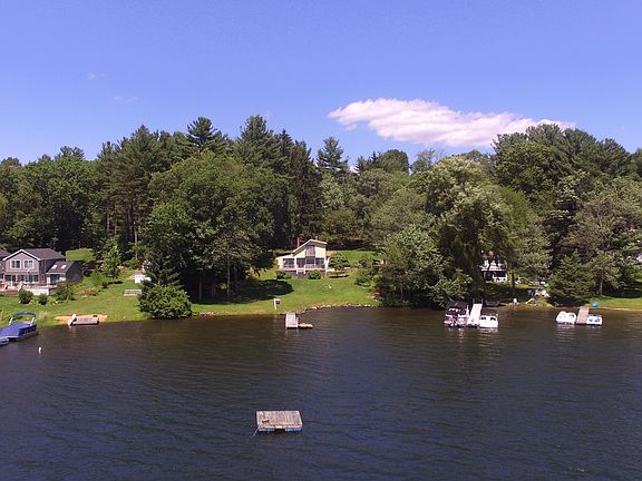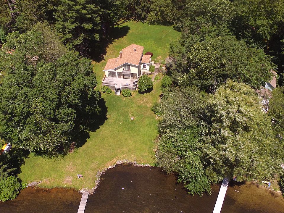 Spectacular views from this Waterfront home with 150 ft of frontage on East Lake Washacum. The possibilities are endless at this lake home. Enjoy the sun and views from the oversized deck, fish from the dock, or get a boat and enjoy life on the water. Nothing will cool you off like swimming on a hot summer day. In the winter snuggle up by the stone fireplace or have fun snowmobiling, skiing, or skating. There is always something to enjoy on the lake. This home has an open living dinning area, a den with laundry, kitchen, bath and mudroom on the first floor. The second floor has 3 bedrooms with a large master including a balcony. The lot is large with .75 acres and if you need more space check out the 3 level garage. Storage, parking, and studio space are all accommodated in this stand alone building.