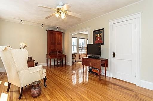 What a location! Steps to the bike path and a short walk to Alewife T, Mass Ave or Spy Pond. Gleaming hardwood floors, freshly painted walls in neutral colors, sunny, bright and in move in condition. Updated eat in kitchen with gas range, built in microwave, refrigerator, dishwasher and disposal. Maple floors throughout, large living room with closet, dining room with built in hutch and plate rail, good sized master bedroom plus second bedroom has large closet. Modern ceramic tile bath. Newer windows, Burnham steam by gas heat, 2012 Roof. Two bonus rooms in basement with electric baseboard heat. Large, level yard.Main water line from street replaced. One car parking.