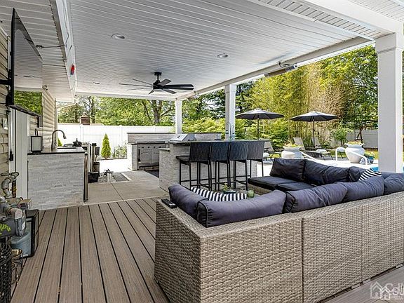 Wow! Move into your 2900 sq ft luxury oasis just in time for summer! Gorgeous entry foyer, formal dining room, stunning living room w/ stone wall fire place w/custom built ins. Modern kitchen w/ quartz counters and stainless appliances, breakfast nook and walk-in pantry. Enormous great room includes impressive wet bar, space for pool table and media room w/ ample seating for gatherings plus arcade! First floor also offers laundry room, new hall bath, guest bedroom and luxurious master retreat w/ spa like bathroom. Walk in closet is magazine worthy! Second floor includes full bathroom and 2 generous sized bedrooms. Backyard is your own resort w/ new heated pool and custom covered kitchen w/ high end stainless appliances, bar top seating area, tv, fan and heaters! Location is ideal -prestigious Lake Ridge Community offering tennis courts, playground, pool club and year-round community events! Just moments away from schools, shopping and bus stop making an easy commute to NYC!