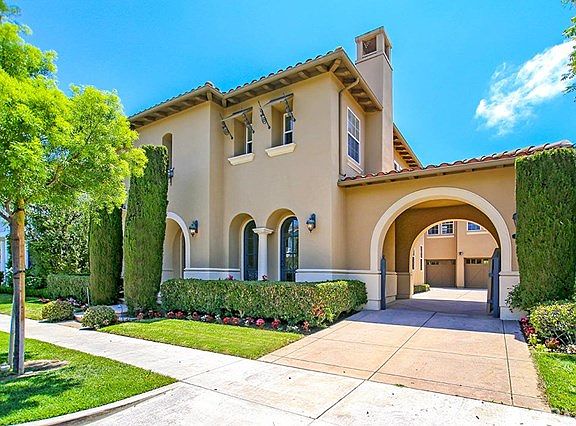 Mediterranean inspired Wyndover Bay home located in the guard-gated community of Bonita Canyon. Inlaid marble mosaic entry leads to a formal living room with a fireplace and den. A spacious, gourmet kitchen with granite counter tops, entertaining island and Viking appliances opens to a great room with a second fireplace. The butler's pantry with a wine refrigerator and plenty of storage off the formal dining room is perfect for entertaining. This Plan 1 home has four bedrooms upstairs all with private full baths, and one large downstairs den that can be converted to a fifth bedroom, plus a powder bath downstairs for guests. Porte cochere driveway leads to a three car tandem garage. The over 8,000 square foot lot with a sunny backyard and large patio has tropical plants. The community amenities include: an Olympic-sized pool with adjacent barbeque eating area, tennis court, and large playground area.