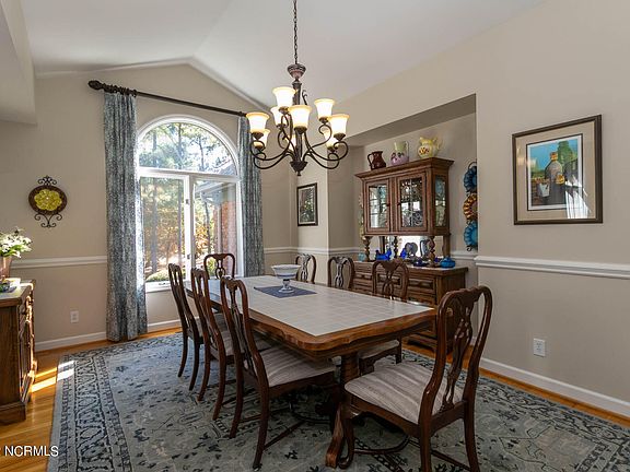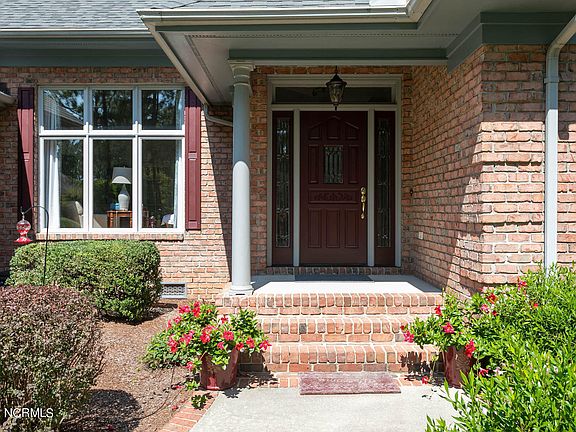 This beautiful one-story brick home on the 16th fairway of the Magnolia Course in the desirable Pinewild Country Club has been extensively upgraded inside and out! The split-plan home offers a light and open design with spacious rooms, gleaming hardwood floors throughout the main living areas, and lots of windows across the back offering great golf views! Major upgrades include a new roof in 2021, new HVAC system in 2018, complete remodel of owners' and guest bathrooms as well as the powder room in 2019 that includes furniture-like vanities, chair-height toilets and step-in tiled showers in both full bathrooms, and extensive landscaping upgrades in front and back. Other improvements include installation of Kenmore Elite Kitchen appliances, including gas stove and oven, a larger Trex deck, installation of a 300-gallon buried propane tank, enlarged and remodeled laundry room, and new irrigation system with drip lines and a separate irrigation well. A spacious living room has a gas log fireplace with granite base and surround with white base cabinetry and glass display shelves with mirrored backs and arched tops on each side, columned entry to the dining room with a cathedral ceiling and French door entry to a large family room. The family room has double glass doors that open to the back deck. A bright breakfast nook is by a bay wall of windows and the kitchen. The owners' suite has a spacious bedroom, large walk-in closet and en-suite bathroom with his and her vanities. The guest bedrooms share a bath with separate single sink vanities and step-in tiled shower. There is also a great workshop/golf cart storage accessed from a double entry on the side with a new concrete apron. It accesses 2,000 square ft. of walk-in crawl space with lots of room for storage and is lined with commercial grade plastic. The garage also has lots of built-in storage space. This home has lots of curb appeal and is great condition!