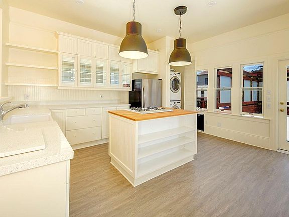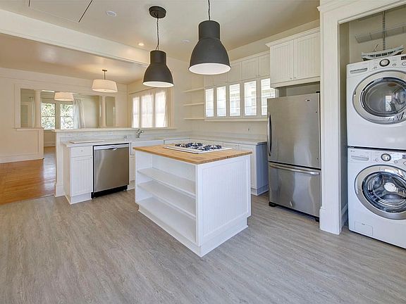 Charming top floor 1920's style duplex with modern day luxuries. Incredible enclosed deck off of the kitchen, beautiful 10ft ceilings, crown molding & wainscoting coupled with an open floor plan, remodeled kitchen w/ farm sink and custom island with gas stove top and updated baths. This peaceful and bright home features a primary suite that opens to a private deck, hrwd floors, W/D and attached garage with 1 car parking.