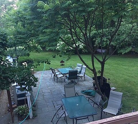 I love the layout of my house. The downstairs has a completely remodeled large master bedroom with pinewood floors, recessed lighting and a gorgeous huge en suite master bathroom with tiled walk in glass shower with seating and a small walk in closet. Downstairs is a lovely office with french doors and a beautiful large laundry/utility room, and finally, a mudroom with excercise equipment. Upstairs is 3 bedrooms, 2 full bathrooms, a library area in the house's center, a family room, living room and newly remodeled kitchen with built in 8 seat granite center table.