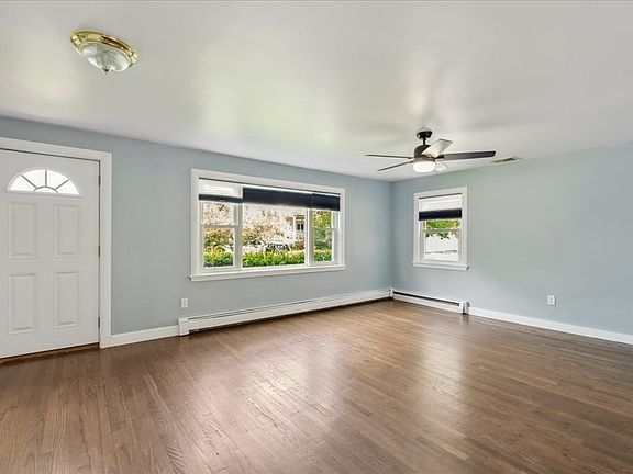 Rare opportunity to purchase in Melrose under $1mil! Located just minutes from Oak Grove T Station. The home has been tastefully renovated with an open concept floor plan. The newer Kitchen and Dining Room area is large and perfect for entertaining. The kitchen connects seamlessly to the enclosed porch with access to the rear deck and private back yard. The oversized Living Room is filled with sun through the front bow window and boasts Hardwood floors and brick hearth for wood or pellet stove. . The 3 bedrooms are located down the hallway past the 1st full bath which has been recently remodeled including wainscoting and vanity. Additional closet space has been added to the 2nd bedroom. The Main Bedroom is expansive with a large bath including a heated floor, walk-in shower and double vanity. Newer central A/C, insulation and the inclusion of a B-Dry system in the basement are just some additional benefits for this home. This is the don't miss home in Melrose!