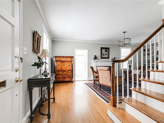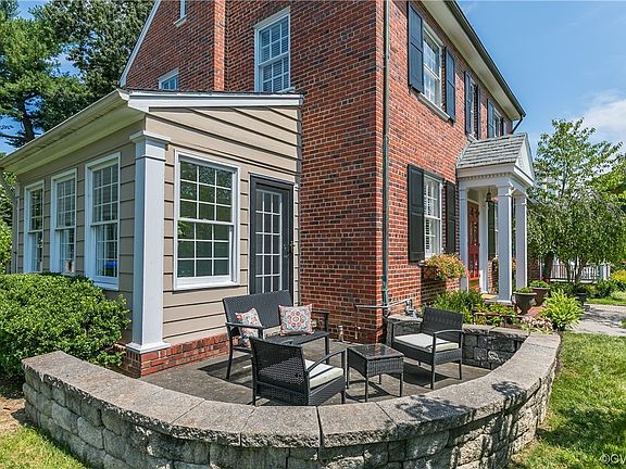 Quintessential brick and slate Colonial with a generous two-story brick BRICK addition in cherished Stonewall Court is filled with SO many appealing features! Living Room with fireplace + custom cabinetry. Sun Room/Office with new tile flooring + French door opens to front walled terrace. Freshly updated Kitchen with Quartz countertops, subway tile backsplash & casual dining area opens to Family Room with 10’ ceilings & double French doors lead to covered rear terrace & welcoming private yard with shed. Dreamy Primary Suite with picture window, 2 spacious closets + en-suite bath with 2 vanities. Basement Rec Room with Laundry Room & Powder Room. Paved driveway.