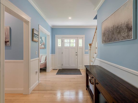 Completed in 2020, this home combines modern amenities and design elements while still maintaining the traditional charm of the area. The upgraded exterior trim package creates a sense of sophistication with 9.5 inch corner boards, shutters and traditional style colonial window casing and headers, all made of composite materials for easier maintenance. Inside you are welcomed by clear Maple flooring, beautiful crown moulding and chair rails. The open concept kitchen features high-end Viking appliances, renowned for their quality, performance and sleek design, quartz countertops, inset cabinetry and a spacious island. The oversized windows in the dining room and living room allow for ample light and a serene view of the wooded open space. The expansive primary suite boasts a large walk-in closet, vaulted ceilings, and a full bath with walk-in shower, Kohler fixtures and a double vanity. An additional ensuite bedroom with full bath and walk-in closet, two additional bedrooms and a full bath complete the second floor. The lower level offers a great escape and can be used for a media room and exercise space. The overall quality of construction, craftsmanship, and attention to detail makes this home noteworthy. Located in Yarmouth Village, known for its historic architecture, quaint shops and vibrant community, this home is on a dead end street just minutes from the schools, local trails and downtown!