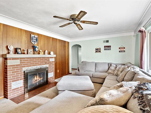 Seller says MAKE AN OFFER! Welcome to this full brick gem, brimming w/character & nestled on over half an acre in Shiloh/O'Fallon schools! This 3-bed, 2-bath home combines vintage charm w/modern versatility. Arched doorways & custom woodwork add timeless elegance, while wood floors lie hidden beneath the carpet in living room & beds. Gather around the cozy brick/stone FP in the spacious living room, or step into the kitchen featuring vintage cabinetry, including some original pull out drawers. A sunroom off the kitchen offers easy access to the garage &views of the lush yard.The fin bsmt provides extra space to unwind, complete w/a rec room, second fireplace, bath, laundry rm, & two bonus rooms.You'll also find lots of storage & walk-up steps for convenience.Outdoors, relax in the covered patio area w/electric—perfect for future outdoor kitchen plans.Enjoy evenings relaxing by the firepit or on the patio.Addt'l perks include a one-car garage, covered front porch & shed.Selling as-is. Additional Rooms: Sun Room