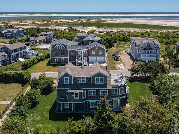 OFFERED FULLY FURNISHED AND READY FOR SUMMER OCCUPANCY. Immerse yourself in the ultimate beach lifestyle. Superbly located in a highly desirable Lighthouse Beach neighborhood, this luxurious beach house built in 2018 was extensively refreshed in 2023 with all new bathrooms, appliances, light and plumbing fixtures, smart technology and exterior curb appeal. The interiors are both elegant and playful offering a timeless coastal character. The home brings the outside in with the multi-level deck areas and view filled living spaces. The main level great room has a seaside vibe with nautical touches, fireplace, wood floors and a fully equipped kitchen with a quartz center island and backsplash in calming shades of blue. Wrap around windows frame the sitting area that opens to the main level. There is also a private en suite bedroom. Above is an additional en suite bedroom, laundry and a primary suite with a private study/sitting room, fireplace and deck with spectacular views. This is a special opportunity to be in a premier location This unique offering is an oasis for relaxation and complements the perfect coastal landscape of Chatham's coveted Little Beach area