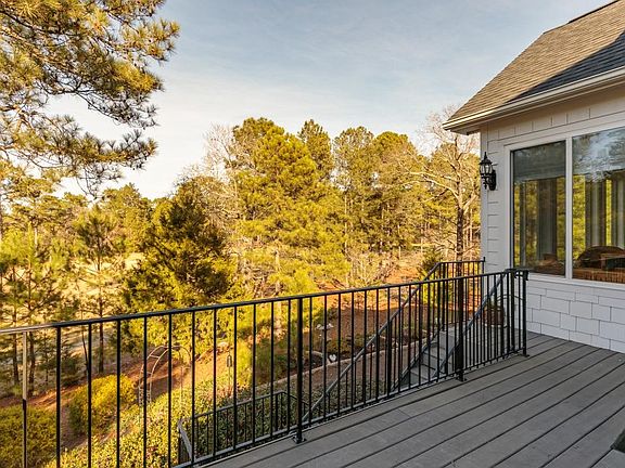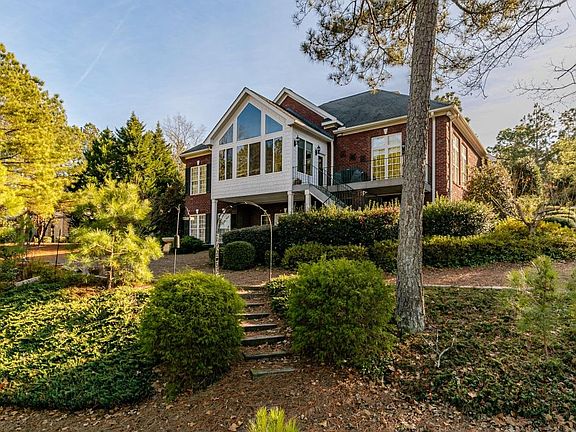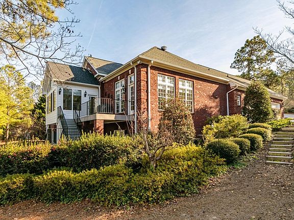 This stunning brick home in desirable Pinewild CC is located on the 11th hole of the Magnolia course with a waterview. This beautiful home has it all! It exhibits three bedrooms, three and half bathrooms, home office, recreation room, newly added tiled sun porch, formal dining and living room, family room/breakfast area and large storage room. Amazing high ceilings, upgraded crown molding, newer hardwoods throughout main living floor, two fireplaces, water heating recirculation system, special attic insulation and solar vent fan. Great kitchen with breakfast bar, cherry cabinets, corian countertops and tile backsplash. Trex decking with cast iron railing off of kitchen and sun porch. Spacious master suite with Kempas Autumn hardwoods, his/her sinks, tub, walk-in tile shower and closet.Master suite and home office on main level. Great size recreation room with wet bar, covered porch, large storage room, two guest guest bedrooms and bathrooms on lower level. This house is a must see!