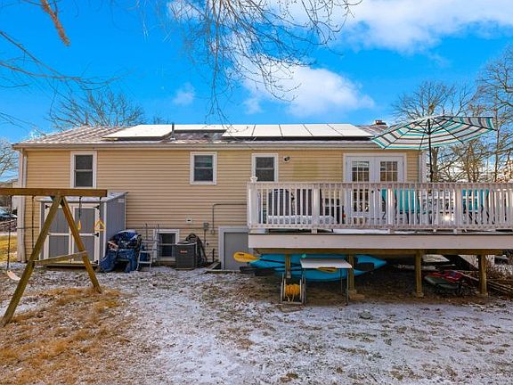 Beautifully maintained split level Ranch home located on a quiet dead end road, minutes from your pick of beaches! This lovely home features three bedrooms upstairs and a full bathroom. Newly renovated kitchen is bright and welcoming, offering new appliances and plenty of storage. Newly installed French doors in the dining room let in lots of sunshine! In the basement you'll find a finished office with large closet, a large, finished bonus room with LVP flooring and walk-in closet, refreshed laundry center, and another huge unfinished room that spans almost half the house. The home also has Central A C, full attic, working fireplace, hardwood floors, maple cabinets, white subway tile back splash and travertine tile bathroom. A large back deck overlooks greenery surrounding the property for a perfect amount of privacy. The home has a landscaped yard complete with irises, hydrangeas, day lilies, wild black raspberry and strawberry with a small herb garden as well. Towards the back corner unwind around a fire pit. This oversized lot provides you with more space to build and grow or to enjoy the comfort it already provides.