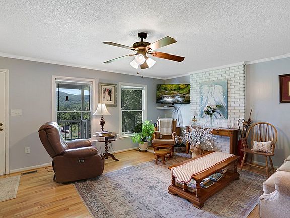 Big mountain viewsBrick ranch homeSpacious front porchSecond kitchenScreened in back porchFire pit area