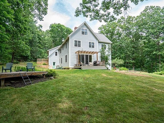 A rare find in this market! Check out this airy, light-filled spacious family home on a private wooded lot at the top of a hill with views of the Mt Holyoke range. Fantastic flowing open floor plan as well as separate accessory apartment which is perfect for multi-generational living or extra rental income. The first floor includes the kitchen, dining and living room area that leads out to a newly installed deck for your outdoor enjoyment. There are 4 bedrooms 1 on the 1st floor and 3 additional bedrooms on the 2nd floor that is a split plan with a media or play room as well. The 5th bedroom is located in the accessory apartment which has its own access, with a kitchen, living room, bedroom and full bath including a washer & dryer hookup. If more space is necessary, there is an unfinished walk up attic with 2 additional rooms, and partly finished basement. Just over the Leverett line you will be only minutes from UMass, Route 9 shopping and restaurants. Don't miss out!