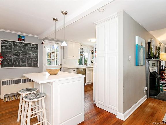 WHY BUY A CONDO WHEN YOU CAN BUY A HOUSE! Adorable updated home in coveted Long Lots neighborhood set back from road on large lot. Perfect starter house or downsizer. New white kitchen with gorgeous quartz stone counters, stainless steel appliances and breakfast bar island. Dining area with bay window, open concept kitchen. Cathedral ceiling living room with wood beam accent and wonderful wood burning fireplace, two 3-lite slider windows and two skylights allow natural light for the coziest spot in the house. Hardwood flooring featured throughout home. 2 bedrooms and an office boasting built in large desk and cabinets as well as built in shelves, this can be an additional bedroom if preferred. Two newer full baths, oversized drop-in tub in upstairs bath and wall to ceiling tiles plus separate shower with rainfall showerhead. Walk in closets in each upstairs bedroom lend to ample space for clothing and storage. Brand new two story two car garage with walk up storage space which can be fully finished (784 sqft) for a bonus anything or just use as a ton of storage space. Great yard and swing set ready for play! Hardiplank siding on house and garage w/lifetime gaurantee. Backyard has great large patio for entertaining and eating al-fresco in the shade of fully grown beautiful Japanese maple tree. Newly done driveway provides plenty of parking spots and room for a basketball hoop. New roof. Agent related. Closet can easily be framed back into downstairs bedroom along left wall. Was taken out to make room most condusive as an office. Home can easily accomodate a Central AC system if desired, room in attic and crawl space. Wall Air Conditioners all operate and do a great job cooling home. Expansion possibilities present. Additional 784 square feet of space available to be finished, ask agent for details. AS-IS- Priced under market value for quick sale! Contingent on owner finding suitable housing.