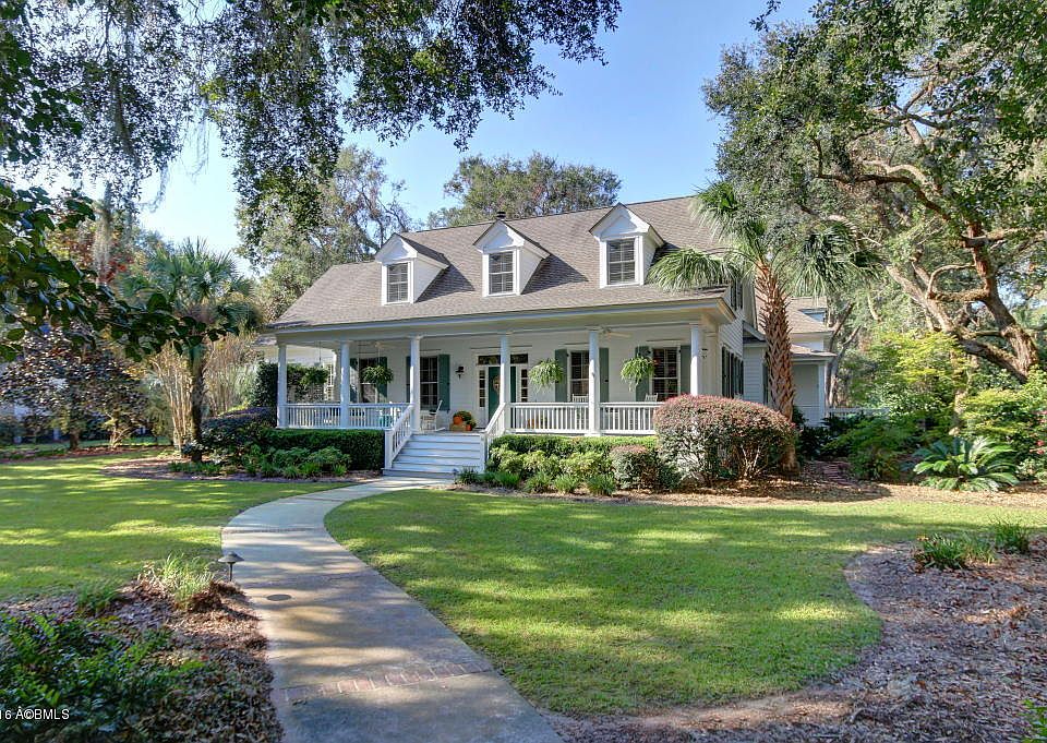Gracious home with timeless Lowcountry architecture in desirable Coosaw Point neighborhood. From the moment you enter the inviting foyer with the cathedral ceiling and elegant stairway, you observe the attention to detail with transoms over the front door, entrance to the formal dining room on your right and the spacious, den/office on the left which has a full wall of custom built cabinets and shelving. The family room beyond is the perfect place to curl up in front of the fireplace while watching TV or gathering with family. The well-appointed kitchen has a wood topped center island, high end appliances and roomy breakfast area. There is a second stairway to the upstairs bedrooms and bonus room from the kitchen area. The first floor master suite with door to the screened porch feature double vanities, a separate shower and a 14'x7' walk-in closet with custom shelving. The utility room has counter top with cabinets, a large closet and laundry sink. The second floor has three bedrooms upstairs, two share a bath with double vanities and one bedroom has an en suite bathroom. In addition there is a spacious bonus room with two closets as well as a large dormer area for storage or playroom. The backyard features a patio area with room for seating around the fire pit and exceptional professional landscaping.