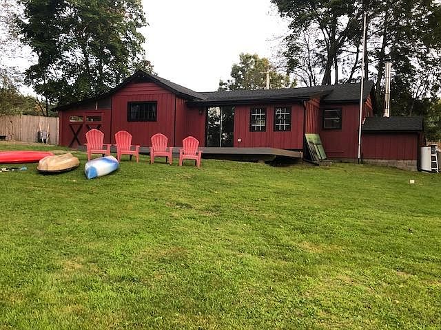 Off to the Lake!! Whether you are looking for fun in the sun or skiing at nearby resorts, you'll have the best of them both with this year-round rental that will make you feel like you are on vacation every day! This home is available on a one year lease term and can be rented fully furnished, where all you need to do is bring the fun to fill the space and start the memories you'll enjoy for a lifetime....Or, if you are looking for a space for more daily living and have all your own furnishings, the cottage can be emptied and made ready for you! Completely updated, this cottage is set perfectly just 1 block off the water with year-round vistas of Copake Lake and even a shared dock for your use to include swimming, kayaking or fishing. Have a boat? Contact the local marina for the purchase of a slip rental. All of these activities will be great in the summertime months; enjoy the fall activities of apple picking and leaf peeping in the County; then, the wintertime means skiing as close as Catamount Mountain just moments away, or your pick of at least 4 other mountains within an hour's drive. Open floor plan layout means everyone is in on the fun, including a kitchen that opens to the Living room, dining room and family room area too. A center island in the kitchen is perfect for quick meals on the go, while more relaxing dining can be done at the dining table. The living room is cozied up with a gas heat stove that adds ambiance and warmth, and the hardwood floors and ceramic tile in the kitchen and baths adds to the cottage's charm. There are two bedrooms, the primary and one that offers bunk beds, you'll also find vaulted ceilings, a 3/4 bath and there is even stack laundry facilities for convenience. Relax on the front deck and watch the water's activities, roast marshmallows over the firepit, and you can even tuck the car under the carport. Come enjoy Columbia County year-round from this sweet and exciting cottage! Rental application required, credit score and proof of ability to pay for those applicable, references and security will all be required. Okay to bring the small pup too, rental price for the pet is $100 more a month; no cats and no smokers please. Tenant is responsible for all utilities, lawn care and snow removal. No use of the Shed