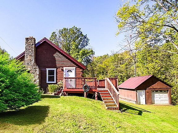Are you thinking about a cabin in the country? Here is your opportunity with this 2 bedroom, 1 bathroom true log cabin with a wood burning fireplace. The home also features an upstairs loft with two additional rooms that could be used as an office, bedroom and more. The home has a large deck for entertaining and there is even a fire pit to enjoy those cooler evenings. PLUS, there is a detached 18x20 garage with electricity. This is one that you do not want to miss!