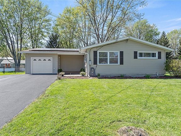 New ranch listing in Franklin Park in the East Syracuse School District! You’ll be impressed with this spacious 3 bedroom (potential for 4 bedrooms), 2 full bathroom with 1,652 SF! The first floor has 3 bedrooms, 1 full bath, a living room, eat-in kitchen, a formal dining room, laundry, and a captivating bright family room (20x25’) with beamed/cathedral ceilings and a cozy, wood burning fireplace. From the impressive family room, a sliding glass door leads to a spacious and enclosed porch. From the enclosed porch, another slider leads to the outdoor deck. The basement offers additional living space with a 4th bedroom, 1 full bathroom, a laundry room with sink and the utility room. The backyard has a shed, a garden area and a partially fenced in yard. This home also has solar panels and a newer roof. Come see this ranch today!