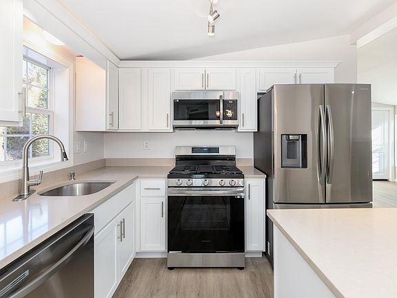 Back on the market Due to Financing Issues. Attractive remodeled home in a 55+ community. The open floor plan creates a warm, welcoming interior that is bathed in natural light and boasts a flow-through living area complimented by a gas fireplace and Central AC. This inviting, completely updated kitchen contains brand-new appliances, cabinets, marble countertops, and center island. New roof, furnace, hot water heater as well as two new baths, flooring and fixtures make this an ideal turn-key solution. Park rent includes mowing, landscaping, plowing of your driveway and roads, plus trash removal!!! This is the definition of a hassle-free property. There is also an association clubhouse with a kitchen and a gym. Perfectly situated in an ideal location just a short drive to local attractions and great shopping. Literally everything you need access to is a brief ride drive from home. A rare opportunity to own and live, or rent out for passive income.
