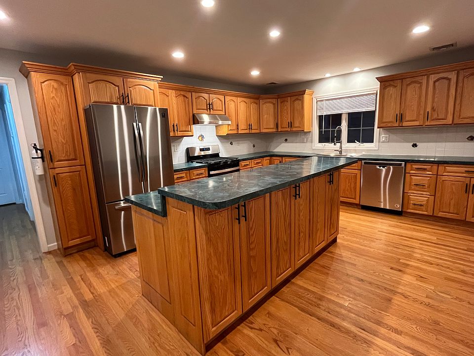 BEAUTIFUL 2nd FLOOR APARTMENT- ABSOLUTELY MUST SEE! This stunning 1600 sq ft second floor apartment is now available for rent! Offering 3 spacious bedrooms and 2 full bathrooms, this home is perfect for families or professionals looking for comfort and convenience. Bright and open layout with abundant natural light. Brand new stainless steel appliances in custom made kitchen with large center island. Beautiful new master bathroom and spacious closets in every bedroom. Central AC/Heat and brand new gas stove, refrigerator, and dishwasher. Nice quiet street walking distance to schools, parks, shops, and new state of the art train station. Off street parking and washer and dryer available. Apartment available NOW required income/credit check. NO REALTOR FEES. TENANT pays for gas and electric. Small pets ok with approval. Tenant responsible for gas and electric. Owner pays for water.