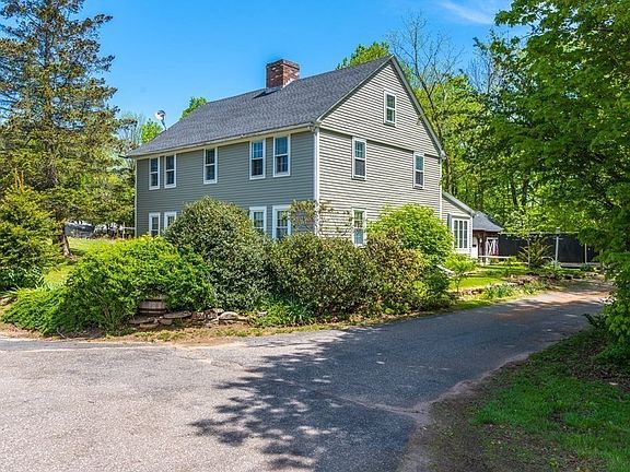 GORGEOUS 87+ ACRE PROPERTY IDEAL FOR A PRIVATE ESTATE and LIVESTOCK!. This property has it all, 4 bedrooms, 2 full bath 2780 SF Colonial built in 1734. The kitchen added in 2000 has hickory cabinets, walnut floors, vaulted ceilings w/ skylights, 2 full baths 1 on each floor, w/ the main portion of the house built around a massive center chimney. Upgrades beside the kitchen include replacement windows, roof (main house 2010 and roof over family room and garage 2018) and electrical. Two wood stoves supplement the heat in the winter. There is an attached two garage as well a large barn/storage area and workshop. Two additional outbuildings, one with power built 2011 offer even more storage and workshops! Just outside the house there is a beautiful road leading to a 5 acre (approx) pasture with cow barn and partial fencing. Further up the road is a hunting cabin (2008) built from trees harvested from the property and a vernal pool. OUTDOOR ENTHUSIAST THIS IS YOUR PROPERTY!!