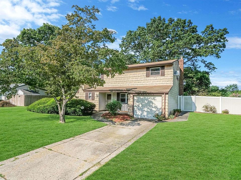 Welcome to 16 Majestic Rd., Selden, situated in the sought-after Holiday Park neighborhood within the Middle Country School District. This four-bedroom, one and a half bath split-style colonial house offers excellent potential for those looking to renovate and personalize their next home. Though well-kept by the original homeowner, the interior is ready for updates. Hardwood floors lie beneath the carpets upstairs, and the den features a cozy wood-burning fireplace. Additional amenities include in-ground sprinklers, a re-insulated attic, a 1-car garage, and a partial unfinished basement. The property spans .21 acres, fully fenced with easy-to-maintain landscaping. With close proximity to Veterans Park and Hawkins Path Elementary School, and located near local conveniences, this house is a great deal for the price and is expected to go fast. Schedule your viewing today and envision the possibilities that await at 16 Majestic Rd.