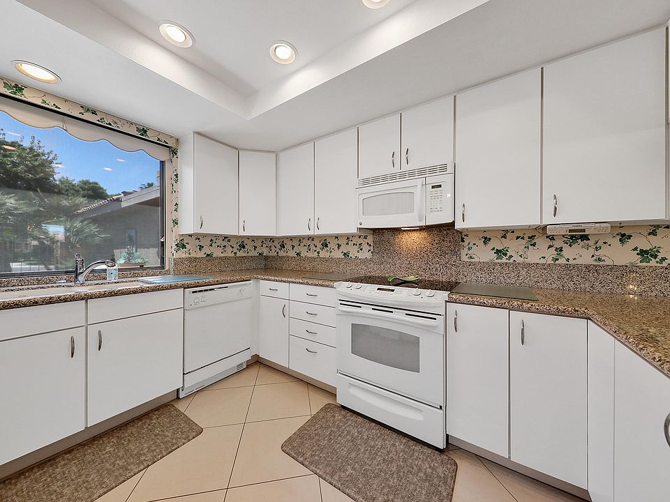 On Hole #15, this Granada plan in Sunrise Country Club has a great resort feel with 2 bedrooms, 2 baths & large open living area. The private courtyard entry has lots of room for wonderful outdoor living/dining & master bedroom has sliding glass doors that open onto the back patio on the golf course. The second bedroom is separate to allow your guests their own privacy with sliding glass door onto the private front courtyard & walk-in tub in bathroom. With the amenities of granite countertops, tile flooring, skylights, dual pane windows, epoxy garage flooring, oversized garage, and many other extras this condo is for you! HOA Dues include cable, trash & total exterior care of unit including roof. Sunrise Country Club is a guard gated community with 746 Residential condos, 18 Hole Par 64 golf course, 10 championship tennis courts, 10 Pickle Ball courts, 21 swimming pools/spas, clubhouse with dining room, lounge, grille, golf/tennis pro shops & fitness/activity center. Rancho Mirage is In the Heart of the Desert. Close to major shopping, entertainment & health facilities. Palm Springs International Airport is just 20 minutes away.