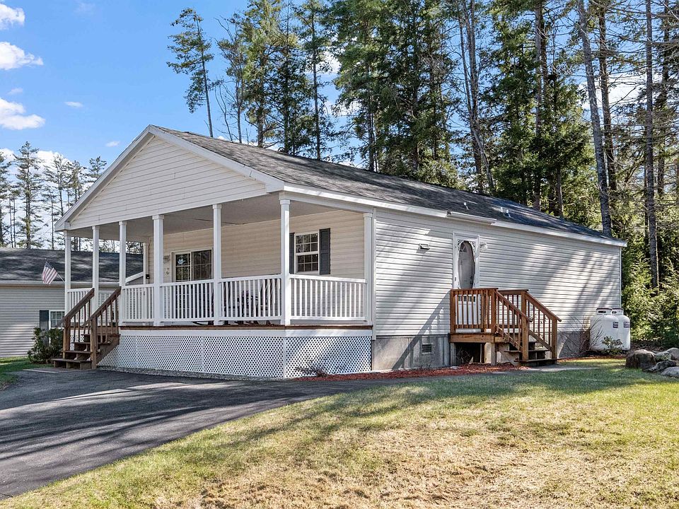 New Hampton, NH 03256- Are you looking to downsize? Are you thinking you want to be closer to the mountains? Are you looking for an affordable option for your next home? 16 Mansfield Woods could be just what you are in search of in your next home. With and surrounded by your peers this home is a winner in today's market. Mansfield Woods is a quality 55+ community that was created in 2012 and is located so conveniently off Route 132 offering easy access to I-93 and all the Lakes Region of NH has to offer. When you see this home you will want to stay. The front porch is sundrenched giving you a nice spot to enjoy your morning routine spring/summer and fall. As you enter through the front slider you see the open concept of the living room, and eat-in kitchen area. Entertaining guests in this area will be fun for the space it really nice and the openness will allow you to prepare and visit easily. The primary suite allows you to have your own private space with a hallway bath and 2nd bedroom perfects for family and friends and can double as your office or den. There is a small laundry room off the kitchen which is super convenient. The home will be sold fully furnished to include the refrigerator, gas range, dishwasher and the washer/dryer. We look forward to showing you this home.