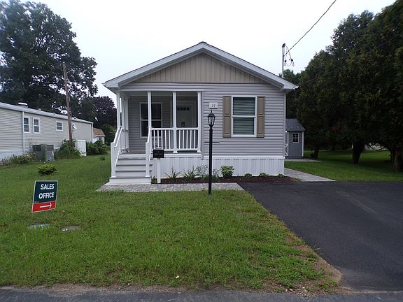 The home is located in a 55+ community Interior and exterior finishes will vary. This lovely home features two bedrooms and two full baths. All kitchen appliances included. Central A/C, patio and utility building.
