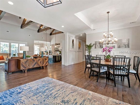 New construction on the golf course! The Santee III is an exciting new model that represents a modern take on Lowcountry design. Traditional Lowcountry detailing on the exterior, a commanding wow factor inside that is evident upon entry! Vaulted ceiling w/ wood king truss beams highlight the great room, as does the beautiful fireplace & built in bookcase. High end cabinetry & appliances in your gourmet kitchen. Spectacular master suite w/ private porch, 2 guest BR's each w/ en-suite BA's, formal & casual dining, separate laundry room, & powder bath. The large bonus room & 4th BA above the 2.5 car garage complete this new home package!
