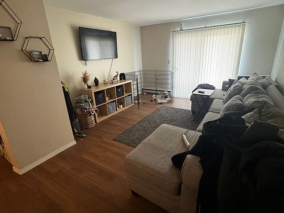 Off the main road nestled in the trees, large 1 bedroom unit, updated, bright, great deck/patio off the living room, large bathroom, tons of closet space, garbage disposal, self cleaning oven, new floors, tons of storage, dog park. Landlord pays trash, landscaping, snow removal and water. Owner pays water, trash, landscaping and snow removal. Free storage on premise.