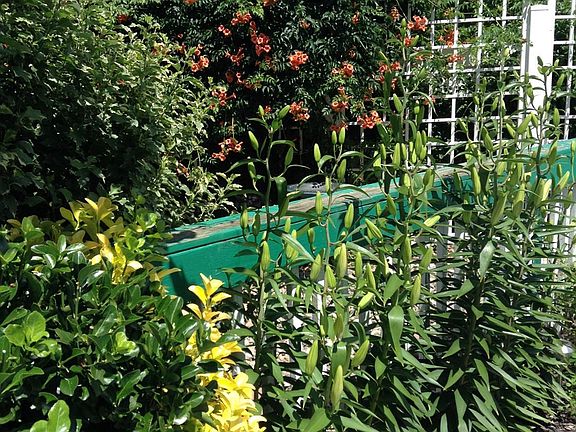 Flowering bushesEvergreen trees