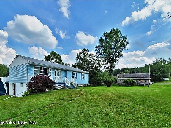 Ranch home on 2.7+/- acres offers 3+ BR's, open kitchen/ dining room, full finished walk-out basement (3 rooms plus laundry) with woodstove, hardwood floors and tons of potential for home occupation. Situated on a dead-end road in Bethel this comfortable home boasts a beautiful setting with a lovely yard, small pond, berry bushes, stone wall and plenty of room for gardening and space to play. Two large outbuildings (one with garage plus shop 2000+ SF) plus a barn with electric and a pavilion can be used for whatever your heart desires. This would be great for any home business, antiques, collector, hobbyist, woodworker, auto business or more! The location is perfectly positioned for easy access. Just off of 17B, this property is very close to area lakes, businesses, Bethel Woods Center for the Arts, restaurants, antique shops and is moments to NYS Rt 17/ 1-86. Great opportunity in a peaceful country setting.