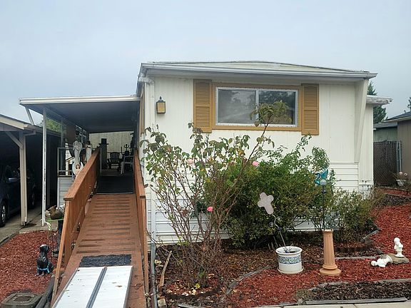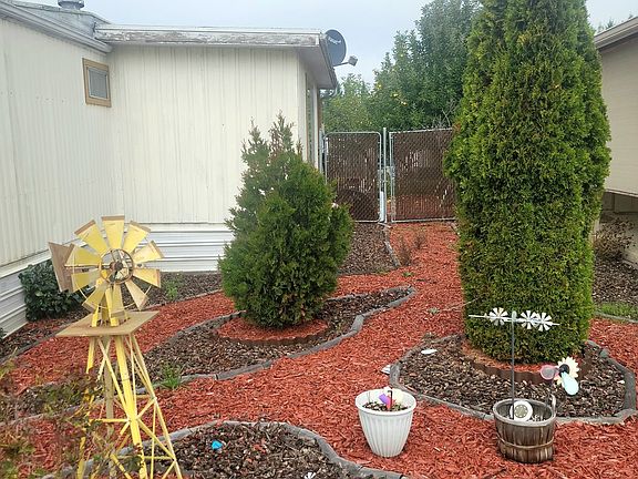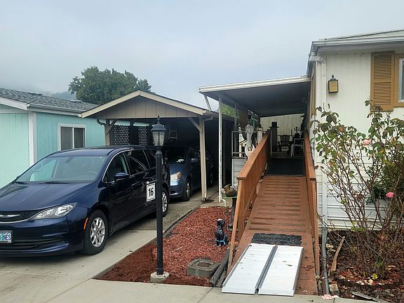 Cute and affordable home in a clean, quiet, 55 plus park. Unit 16 includes 2 bedrooms and 1 1/2 baths. Tip out in livingroom gives spacious living space. Covered deck with ramp to front door. Large shed and carport with tool shed. Fenced back yard. Simple rock landscape in front yard.