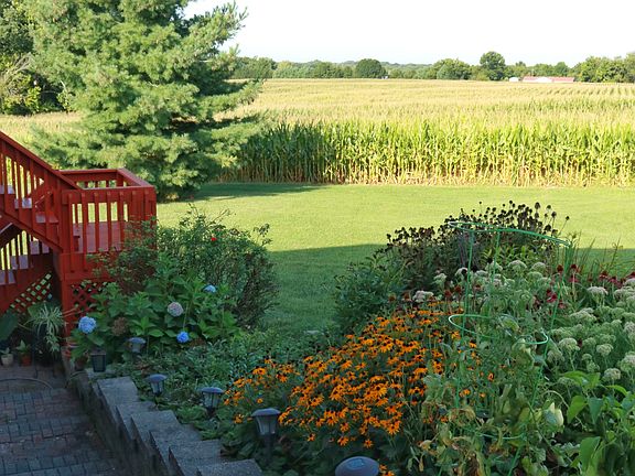 Atrium ranch with walk-out basement and windows overlooking views of woods and fields on a quiet cul-de-sac. Two car side entry garage with John Deere room in back with double door from lower level. New re-engineered hardwood flooring installed in upstairs living room, kitchen, halls. New carpets in bedrooms, tile and new grouted luxury vinyl tile in baths. Appliances stay, to include nearly new washer and gas dryer.