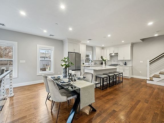 Welcome to your dream home in JP, where modern elegance meets convenience. Featuring an open floor plan, 3 bedrooms, 2.5 baths, private roof deck, private fenced-in patio & two car garage w/ attached bonus space–this residence offers an expansive open living & entertaining space ideal for everyday living & gatherings.The open layout is enhanced by a charming Juliet balcony, stylish cable railings & half bath. The chef's kitchen boasts white shaker cabinetry, sleek quartz countertops, & top-of-the-line appliances. Upstairs, retreat to the spacious primary bedroom, complete w/ WIC & en-suite bath. There are two additional sun-filled bedrooms, laundry & full bath. A staircase leads you to the private roof deck, equipped w/ a gas line. This energy-efficient home includes green features such as a tankless hot water system & LED lighting. Conveniently located near parks, pond, shopping, restaurants, bike paths, & public transportation–a must see!