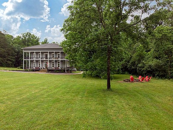 5+/- flat unrestricted acres w/ stream sits this estate style home, great for garden or horses. Stepping into the grand foyer on the main level there is a formal living & dining room with a big stone fireplace in each room w/ built-ins alongside. Main level has a family room w/ FP, extra-large kitchen w/ walk-in pantry, lots of counter space, farm style sink, huge refrigerator and great space for a kitchen table. This grand home sports 12' ceilings and 8' windows, beautiful wood floors and a center room that soars up thru all 3 levels. The master en-suite on the second level has a 7x5 slate walk-in shower, slate floor, soaking tub, water closet, two vanities & a lg walk-in closet & hidden closet. 2 bedrooms with a "Jack & Jill" bath on the 2nd level plus a laundry room w 2 W/D's. On to the 3rd story bonus rooms w/ T&G ceilings - 3 currently used as bedrooms and 1 as a theater room w/ equipment. Both 1st & 2nd level have a wrap-around porch w/several doors leading in/out of the house. A mudroom w/ shiplap, hooks & bench. Private w/ 1 visible neighbor & your private long flat driveway off state paved road. Private well. Not in a neighborhood for ultimate flexibility. Video tour.