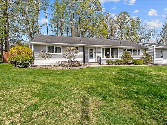Welcome to Your Dream Home! Nestled on a tranquil cul-de-sac, this beautifully updated one-level ranch offers the perfect blend of comfort, convenience, and privacy. Situated on a serene, wooded lot, this home is your personal sanctuary with a harmonious balance of seclusion & community. Step inside to find a truly move-in-ready space with modern updates throughout. The spacious living room is a showstopper, featuring a stunning stone fireplace that exudes warmth & charm. With 3 generously sized bedrooms w/hardwoods & 2 bathrooms, this home provides plenty of room for family, guests, and everyday living. A half bath near the rear mudroom is paired with a standalone shower conveniently located across the hall — perfect for pool users or quick refreshes. Step into your private oasis through the back door & discover a gorgeous landscaped backyard designed for both relaxation and entertainment & an above ground pool. The space includes 2 patios, perfect for outdoor dining, lounging, or hosting gatherings. The fully fenced yard offers ample space for outdoor activities, while a 10 x 12 shed provides additional storage or a hobby workspace. The finished lower level expands your living space with an open area featuring a bar & a 2nd fireplace, perfect for hosting gatherings or unwinding with loved ones. There's also plenty of storage space to keep things organized. This home showcases pride of ownership with numerous updates and thoughtful touches throughout. The garage comes equipped with a workbench & shelving, and the ping pong table in the basement conveys with the property, adding an extra layer of fun & functionality. Don't miss this opportunity to call this exceptional property your home. Schedule a showing today and start building lasting memories on Memory Lane! Tax record states 1260 sq ft, but does not include 13 x 19 addition, so 1507 sq ft reflects reflects the family/dining room. Forced air thru-out except baseboard hot water heat in addition which is Living/Dining Room combination, whatever suits your needs. Currently have basement laundry, but left 1st fl hook-up in mudroom(sheetrocked over it). Hardwoods are under laminate in Living room.
