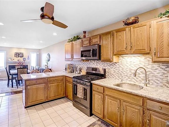 Spacious, bright, updated 2 BR, 2.5 bath townhouse in desirable Glen Pond Condos. Large welcoming entryway with high ceilings leads upstairs to the open concept 1st floor. Kitchen has granite counter-tops, SS appliances, breakfast bar and plenty of cabinet space. Large DR with fireplace, Den with skylight, half bath and LR with with deck completes the first floor. Second floor features master BR with walk in closet and bath with jetted tub, shower and double vanity. Large 2nd BR, full bath and laundry. Garage leads into full finished basement with lots of closet space and walk out to patio. Plenty of additional parking in the lot. Close to schools, restaurants, shops and Rts 46, 3, 80 and GSP.