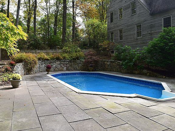 Invest in and enjoy this Reproduction Colonial Saltbox which has all the character and charm of traditional New England in a sought after cul-de-sac street. It provides an ideal balance of quiet and convenience just minutes to the Town Village. This home features high-end reclaimed tobacco wood siding sourced from the heart of CT. The weathered look is intentional and brings out the wavy grain patterns and natural spirals and can range from silver to light gray or even faded black. Great attention to detail with special features such as the wide-board white pine floors, Rumford design fireplaces, special built-ins, four garage bays, large screened porch, etc. The main floor offers a versatile and spacious floor plan that lends itself well for personal and entertaining enjoyment. Enjoy the privacy of your own backyard oasis with your private heated in-ground pool surrounded by a sprawling patio and lush garden space. With ideal Western exposure relax in the screened porch and watch the sun set behind the trees.