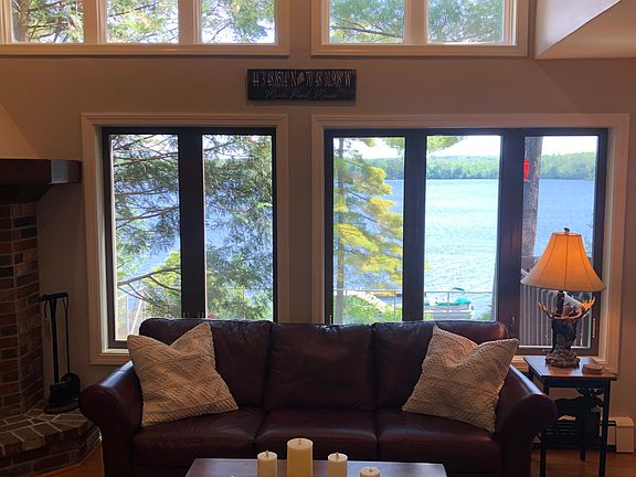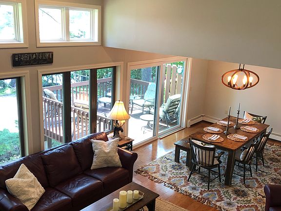 Fantastic Lakefront Townhouse in Moose Pond Village on 12 acres on Moose Pond! 550 feet of shoreline, with on site pool, dock, ( boat slip included ), swimming beach, 2 fire pits, tennis/2 pickleball courts. Waterfront, less than 5 minutes from skiing at Mt Pleasant Mountain and abundant hiking trails! Great views of the water. Soaring vaulted ceilings, wood burning fireplace, jetted tub, lakeside deck and spacious master suite. Something for everyone! Owner pays for HOA fee, ( includes lawn care, snow removal, pool maintenance, dock removal and maintenance, outside lighting, etc) Tenants pay for Heating oil, electricity, Internet