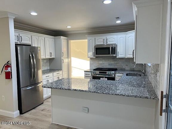 Welcome to 16 Mimosa Lane located in Raintree, a gated lush garden community providing ultimate security. Stunning 2 spacious bedrooms, 2.5 baths, a den and one car garage. Both bedroom have their own master bathrooms. This home is drenched with natural sunlight starting from sunrise until sunset. Open floor plan with combo living/ dining room. Brand new stainless steel appliances. Eat in kitchen features classic white kitchen cabinets with matching marble backsplash and granite countertop. Luxurious vinyl plank flooring throughout. Crown molding throughout. Recessed lighting throughout. All brand new custom vanities with stone countertops in bathrooms. Low maintenance paved patio. Brand new hot water heater. Lots of closets for all your storage needs. Community has many amenities Swimming, tennis court, golf, gym, walking paths and club house.