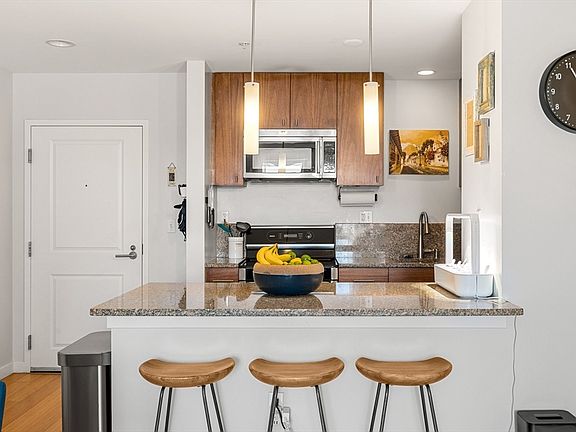 Discover this fabulous 2 bed//1 bath unit with garage parking at the desirable Audubon Park in Fenway. Located on a quaint side street off Beacon, the Southeast-facing unit boasts an efficient layout with an abundance of natural light. Key features include fully-applianced kitchen with island and counter seating, bamboo hardwood floors in the living areas and carpeting in the bedrooms, central heat & a/c & in-unit washer/dryer. The generously sized master bedroom comfortably accommodates a king-size bed and features a spacious walk-in closet. Built in 2006, Audubon Park consists of 53 professionally managed units and is both non-smoking and pet-friendly. Garage space also has an electric charger. Fantastic location, conveniently close to Fenway Park, Kenmore Square, hospitals, schools, shopping, restaurants (including Time Out Market), and entertainment venues & easy access to the 'T' and highways.